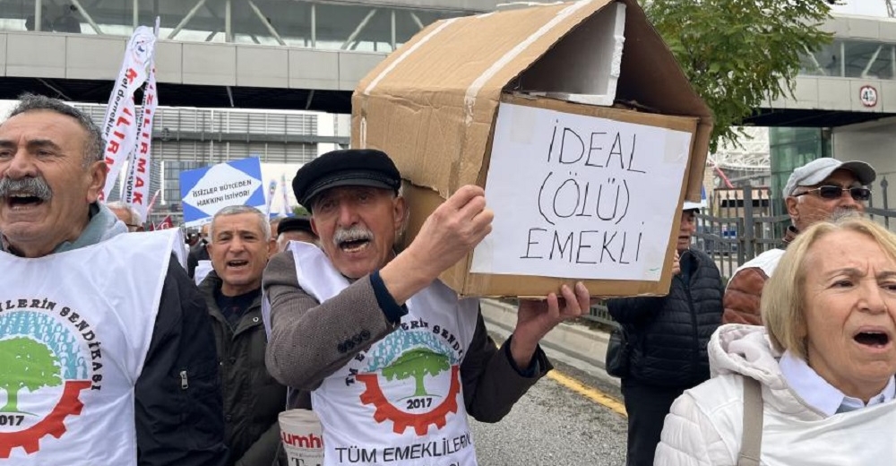 Bugün emekliler, açlık sınırının 30 bin TL’ye, yoksulluk sınırının 100 bin TL’ye dayandığı koşullarda kendilerine dayatılan 'sefalet' düzenine karşı birçok ilde eylem yaptı. Emekliler, maaşlarının 'insanca yaşamaya yetecek' bir seviyeye çıkarılması çağrısını yinelerken, milyonlarca emekliyi ilgilendiren en düşük emekli aylığının artırılmasının da içinde olduğu kanun teklifinin görüşmelerinde 'sefalet' kararı çıkarsa meydanları dolduracaklarını dile getirdi