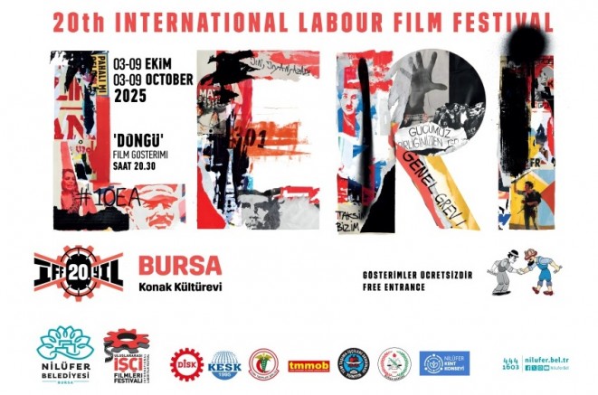 Bursa’da 20. Uluslararası İşçi Filmleri Festivali kapsamında 3 ile 9 Ekim tarihleri arasında film gösterimleri, söyleşiler düzenlenecek. Festivalin açılışı 3 Ekim Cuma günü saat 19.30’da Konak Kültürevi’nde yapılacak. Açılış gecesi kokteyl ile başladıktan sonra “Döngü” filmi izlenecek ve film ekibi ile söyleşi düzenlenecek