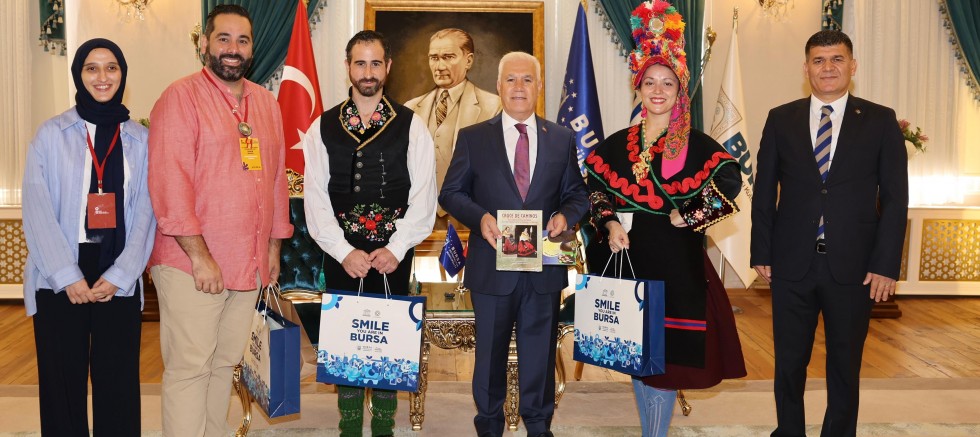 Bursa Büyükşehir Belediyesi adına Bursa Kültür Sanat ve Turizm Vakfı (BKSTV) tarafından düzenlenen 37. Uluslararası Altın Karagöz Halk Dansları Yarışması'na katılan ülkelerin temsilcileri ve yarışmanın jüri üyeleri, Bursa Büyükşehir Belediye Başkanı Mustafa Bozbey’i Tarihi Belediye Binası’nda ziyaret etti. Arjantin, Bulgaristan, Çin, Güney Kore, Gürcistan, İspanya, Kazakistan, Kuzey Kıbrıs Türk Cumhuriyeti, Kolombiya, Kuzey Makedonya, Meksika, Mısır, Panama, Porto Riko, Rusya, Yunanistan’dan gelen ekiplerin yanı sıra 25 yerel halk dansları topluluğunun temsilcileri de ziyarette yer aldı.