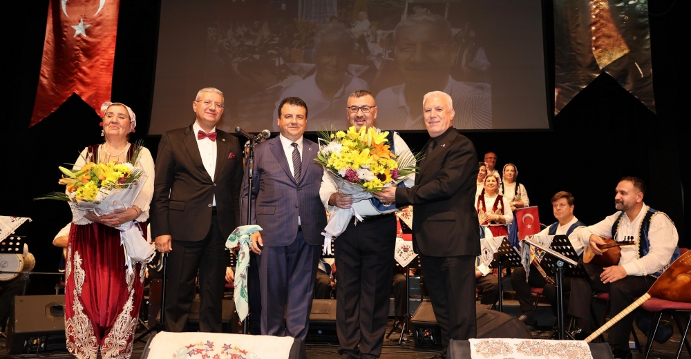Program, Başkan Mustafa Bozbey ve eşi Seden Bozbey ile protokol üyelerinin sahneye çıkarak koroyla birlikte ‘İzmir Marşı’nı seslendirmesiyle sona erdi.