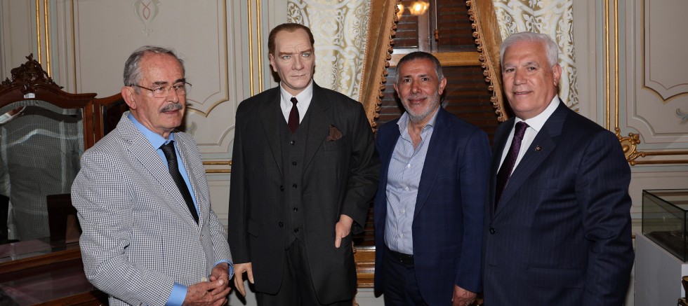 Bursa Büyükşehir Belediyesi, Cumhuriyetimizin kurucusu Ulu Önder Gazi Mustafa Kemal Atatürk’ün aziz hatırasını yaşatmak amacıyla iş insanı Çetin Topal’ın katkılarıyla ve Eskişehir Büyükşehir Belediyesi önceki dönem Belediye Başkanı Prof. Dr. Yılmaz Büyükerşen’in emekleriyle hazırlanan balmumu ‘Atatürk Heykeli’ni Hünkâr Köşkü’nde düzenlenen törenle ziyarete açtı. Gerçeğe en yakın ölçülerde hazırlanan heykel, müzenin özel bölümünde ziyaretçilerini bekliyor. Törene, Büyükşehir Belediye Başkanı Mustafa Bozbey’in yanı sıra Prof. Dr. Yılmaz Büyükerşen, iş insanı Çetin Topal, Büyükşehir Belediyesi Genel Sekreteri Doç. Dr. Ergül Halisçelik ve Büyükşehir Belediyesi yöneticileri katıldı.