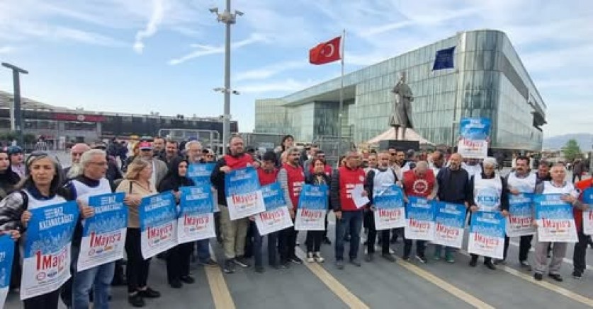 DİSK, KESK, TMMOB ve TTB Bursa'da 1 Mayıs'a çağrı yapmak için Kent Meydanı'nda basın açıklaması gerçekleştirdi. Yapılan açıklamayı DİSK Güney Marmara Bölge Temsilcisi Birleşik Metal-İş Bursa Şube Başkanı Gökhan Aydın okudu.