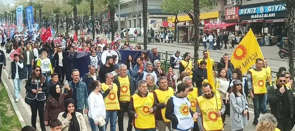 Bursa'da Eğitim Sen, Eğitim İş, TÖB-SEN, Hürriyetçi Eğitim Sen, Eğitim Gücü Sen, Öğretmenler Sendikası, Devlet Memurları Eğitim Sendikası'nın çağrısıyla Fomarada bir araya gelen binlerce öğretmen il milli eğitim müdürlüğüne yürüdü