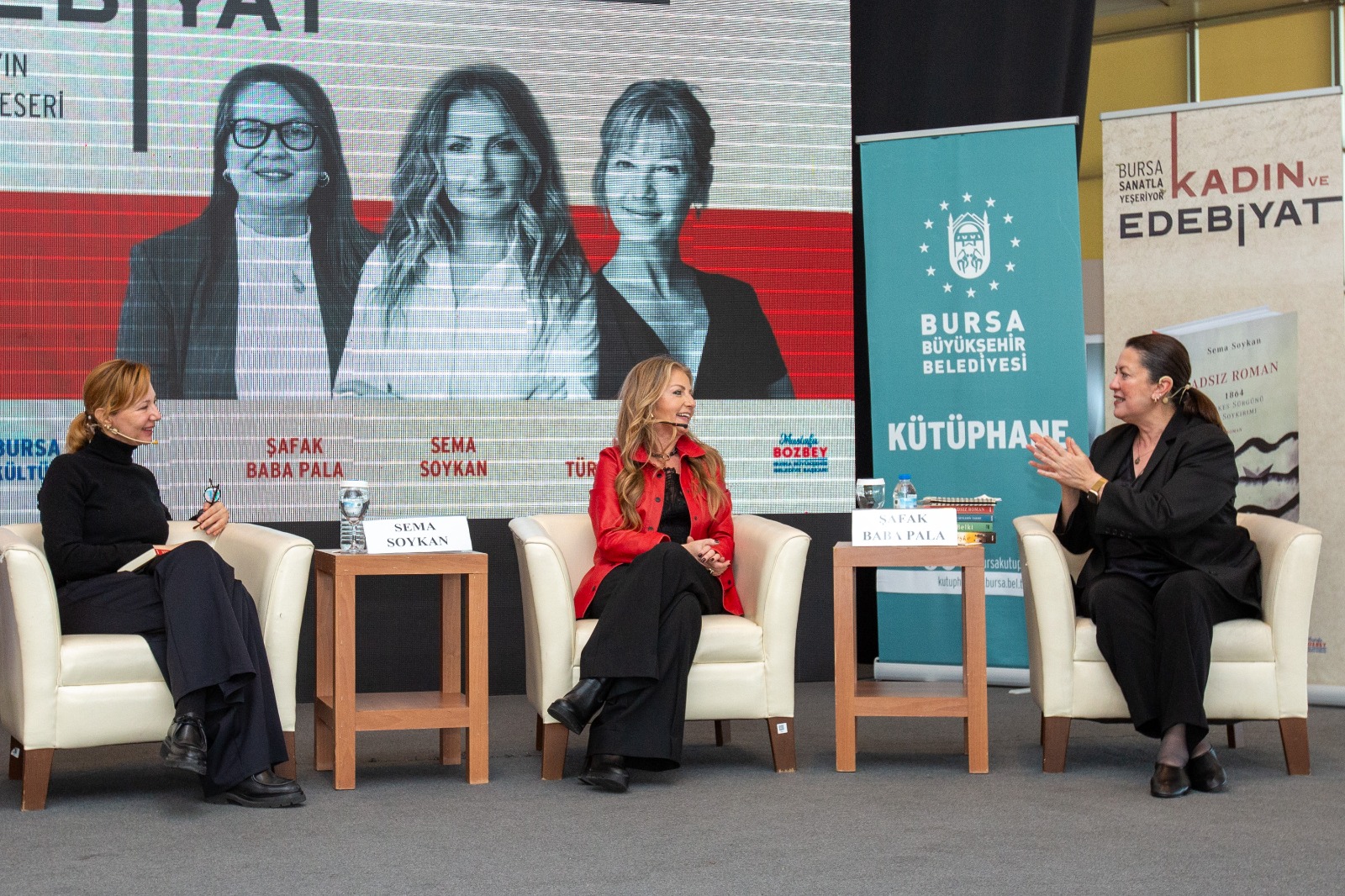 Atatürk Kültür Merkezi Merinos Yerleşkesi Yıldırım Beyazıt Salonu’nda düzenlenen etkinlikte yazar Sema Soykan, “Adsız Roman” adlı eseri üzerine okurlarıyla söyleşi yaptı.
