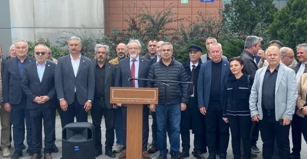 DİSK, KESK, TMMOB Bursa İKK, Bursa Tabip Odası ve Bursa Veteriner Hekimler Odası, Bursa Büyükşehir Belediye Başkanı Mustafa Bozbey’in de aralarında bulunduğu 59 kişi hakkında yürütülen soruşturmaya ilişkin basın açıklaması yaptı.