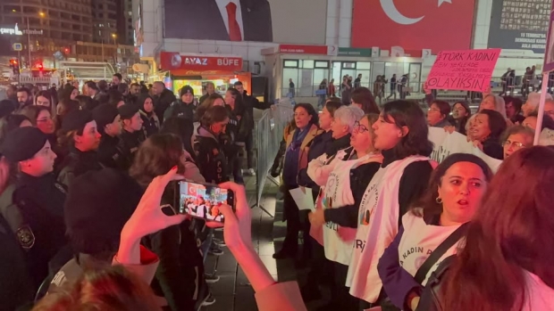 Bursa Kadın Platformu’nun planladığı yürüyüşte'' Valinin emriyle kadınların yürüyüşüne izin verilmemesine ve güvenlik güçlerinin sert davranışına tepki göstererek ''Kadın cinayetleri politiktir”, “Görülmeyen emek sesini yükselt”, “AKP’den hesabı kadınlar soracak”, “Aile yılı değil mücadele yılı” sloganları atıl