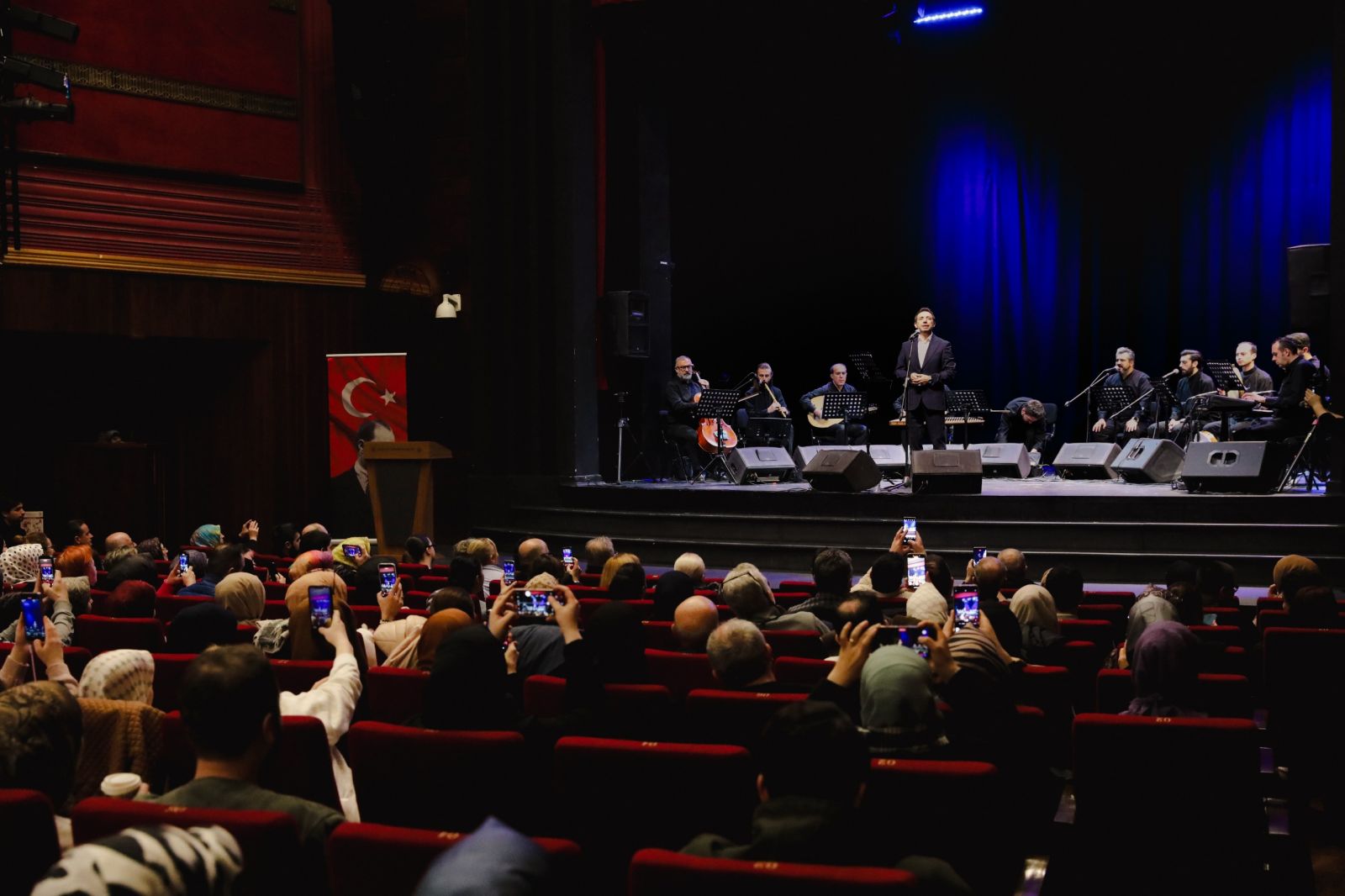 Tayyare Kültür Merkezi’nde gerçekleştirilen ‘Semadan Yükselen Hoş Sadâ’ isimli konserde Ramazan gecelerine anlam katan ezgiler Fatih Koca’nın güçlü yorumu ve etkileyici performansıyla Bursa’da yankılandı. Tasavvuf müziğinin gönüllere dokunan eserleriyle unutulmaz bir gece yaşayan Bursalılar, konser sonunda Fatih Koca ve ona eşlik eden Bursa Büyükşehir Belediye Orkestrası’nı uzun süre alkışladı.