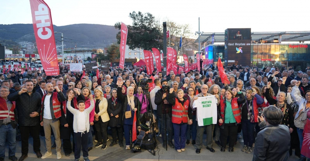 Kendi geleceğini kurtarmak için halkın geleceğini tehlikeye atmaktan hiçbir sakınca görmeyen bir azınlık iktidarı, demokrasi tarihimize ve Bursa'daki irademize karşı karanlık bir durumu yaşatıyor. 20 yıldır aralıksız bu kenti yönetenler, güzelim Bursa'yı yaşanmaz hale getirenler, dolandırıcılık suçundan hapis yatmış bir iftiracının sözleriyle bugün Büyükşehir Belediye Başkanımız tutuklu. Her 2 kişiden birinin oyunu almış ve Bursa'da bir belediyecilik markası yaratmış Mustafa Bozbey Başkanımıza yapılan bu operasyonun nedeni biliyoruz. Büyükşehir Belediyesi'ne çökmek için yapılan, hukukla hiçbir zaman anlatılamayacak bir çökme operasyonu gerçekleştirdiler. Ve bir de utanmadan çıkıp belediye meclisinde yaptıkları seçimle millî iradeyi tecelli ettirdiler. Ya millî irade burada, burada; millî irade bu meydanlarda, millî irade Bursa'nın dört bir yanında var. Millî irade Mustafa Bozbey'dir. Mustafa Bozbey Bursa Büyükşehir Belediye Başkanı'dır. Millî irade arıyorsanız budur millî irade. Bursa'nın başkanı Mustafa Bozbey. 19 Mart'tan bu yana yaşadığımız bu sürecin ne anlama geldiğini size söyleyeyim: Halkta karşılığı kalmamış bir iktidarın, bugün seçim olsa Cumhuriyet Halk Partisi'nin iktidar olacağından, Cumhuriyet Halk Partisi'nin cumhurbaşkanı adayının Ekrem İmamoğlu olacağındandır bu. Tek dertleri tükenmiş olan iktidarlarını sürdürebilmektir. Bugüne kadar yaşananların hepsinin sebebi işte bu korkularıdır. Halkın seçtiği belediye başkanları içeridedir. Halkın seçtiği milletvekilleri içeridedir. Halkın gazetecileri içeridedir. Siyasi parti liderleri içeridedir. Vatanın ağacını koruyan Ege köylüsü, işçiyi savunan sendika başkanı içeridedir. Yarattıkları bu düzen; bir lokma ekmek için mücadele veren milyonlarca insanın, saray etrafında öbeklenen bir avuç insanı her geçen gün zenginleştirdiği bir kölelik düzenidir. Ülkenin nehirleri, yaylaları, madenleri, işçilerin emeği, çocukların ve gençlerin geleceği piyasanın ve bir grup yandaşın hesabına bırakılan düzendir. Ve bu düzen, o küçücük bedenleri, öğretmenlerimizi okullarda koruyamayan düzendir. Bu düzen; okul tuvaletlerini temizlemekten, okul tuvaletlerine sabun koymaktan aciz, okulların temizliğini gariban anneye yaptıran, okulların güvenliğini sağlayamayan ve okulları tarikatlara ve cemaatlere teslim eden düzendir. Bu düzen; holding patronundan alamadığı vergiyi 12 saat ter döken emekçiden alan düzendir. Ülkenin yüzde 60'ına açlık sınırının altında parayı reva görenlerin, insanın bakmaya kıyamadığı güzelim Ege köylerini sırf kömür çıkacak diye bir kararnameyle yandaşa verenlerin düzenidir. Kardeşlerim, korkuları işte bu düzenin son bulacak olmasıdır. Unutmayın, kaybedeceği şeyi çok olanların korkusu da fazla olur. Ama bizler bu mücadeleyi büyük bir kararlılıkla sürdüreceğiz. Bu mücadele, onurlu halk ile onurlu halkı sömüren bir grup azınlığın mücadelesidir. Artık kaybedeceğini bildiği için muhalefet istemeyen ve demokrasi istemeyenlere karşı demokrasiyi ve mücadeleyi seçenlerin onur mücadelesidir. Devran dönecek, AKP halka hesap verecek. Kendisine muhalif olan herkese karşı bir savaş açmış olan bir iktidar var. Şimdi toplumun bütün kesimleriyle, yani bu iktidara karşı duran, karşı çıkan herkesle bir arada olmak zorundayız. Yani bu ülkede demokrasiyi, yani bu ülkede adaleti, yani bu ülkede onurlu bir yaşamı isteyen, talep eden, baş koyan herkesle birlikte bu mücadeleyi birlikte sürdüreceğiz. Birleşim. Hiç kimseyi ötekileştirmeden, egemenlik kayıtsız şartsız milletindir diyen herkesi bu dayanışmaya davet ediyorum. Herkesi bu dayanışmaya ve mücadeleye davet ediyorum. Bugün yaşananlar demokrasi tarihimize kara bir leke olarak geçmiştir. Ama şunu unutmayın, verdiğimiz mücadele de tarihe geçecektir. Başkanlarımız ve yol arkadaşlarımız kurulan kumpaslarla bugün zindanlarda esir olabilir. Ama onların demokratik, halkçı ve kamucu iradesi bugün ülkenin dört bir yanındadır. Allah kahretsin de. Bizler işte bu iradeyi savunmaya ve mücadelesini vermeye devam edeceğiz. Şimdi bize diyorlar, bundan sonra ne yapacaksınız diye. Ne yapacağız biliyor musunuz? Hayallerimizi yıkmaya çalışanların düzenlerini bozacağız, arkadaşlar. Çalınan ekmeği, çalınan yarınları, çalınan adaleti mücadelemizin merkezine koyup hak ettiğimiz o güzel günlere hep birlikte ulaşacağız. Hani o büyük şair diyor ya; eğer halk haksızlıktan, yüce sevgi nefretten üstün, aydınlık karanlıktan güçlüyse çaresi yok usta, biz kazanacağız. Biz kazanacağız. Mutlaka kazanacağız. Yaşasın onurlu mücadelemiz. Yaşasın onurlu mücadelemiz. Kurtuluş yok tek başına. Ya hep beraber.’’