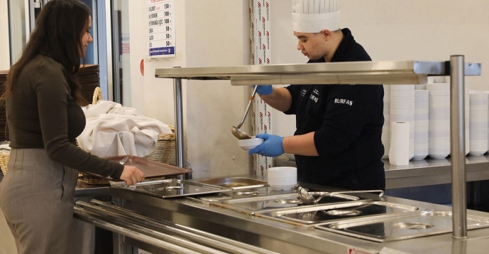 BUSKİ Sosyal Tesisi BURFAŞ restoranında stajyer mutfak görevlisi olarak görev yapan 17 yaşında Arda Can Yılmazer ise günlük yemek menülerinin hazırlanmasında personele yardımcı oluyor. Teorik ve pratik bilgiler alan Yılmazer, gösterdiği azimle mutfaktaki engelleri tek tek kaldırıyor. Tesislerde herkesin kendisine yardımcı olduğunu belirten Yılmazer, mutfakta bulunmaktan büyük keyif aldığını dile getirdi.
