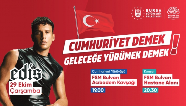 Cumhuriyet’in 102. yıl dönümünün kutlanacağı 29 Ekim Çarşamba günü ise Kapanca-Tirilye rotasındaki doğa yürüyüşünden FSM Bulvarı-Acıbadem Kavşağı arasındaki Cumhuriyet yürüyüşüne, Kaplıkaya Huzurevi’ndeki Cumhuriyet etkinliklerinden Atatürk Caddesi UNESCO Meydanı’ndaki ‘Atatürk ve Cumhuriyet’ temalı dev puzzle çalışmasına, canlı müzik performanslarından ödül törenlerine kadar birçok etkinlikle Cumhuriyet Bayramı’nın heyecanı gün boyunca tüm ilçelere taşınacak. Sabah saatlerinde Heykel Atatürk Anıtı önünde yapılacak olan resmi kutlama programının ardından saat 19.00’da on binlerce Cumhuriyet sevdalısının katılımıyla Fatih Sultan Mehmet Bulvarı’nda ‘Cumhuriyet Yürüyüşü’ gerçekleştirilecek. Saat 20.00’de Nilüfer Hastane Alanı'ndaki Edis konseriyle de coşku doruğa çıkacak.