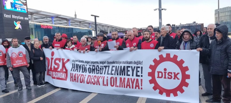 Devrimci İşçi Sendikaları Konfederasyonu’nun (DİSK) 59. kuruluş yıldönümü nedeniyle Kent Meydanı'nda basın açıklaması gerçekleştirdi.