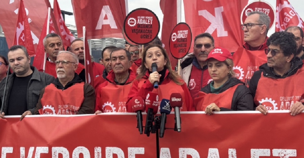 Kent Meydanı'nda yapılan açıklamada konuşan DİSK Genel Başkanı Arzu Çerkezoğlu, "Gelirde adalet talebi, vergide adalet talebi, insanca yaşayacak bir ücret talebi milyonların meselesidir, milyonların talebidir. O nedenle bu yürüyüş milyonların yürüyüşüdür. Bu yürüyüş memleketin ülkenin geleceğini yeniden kurma yürüyüşüdür. Bugün asgari ücret Türkiye'de bir ortalama ücret. Çalışanların yarısından fazlası asgari ücretle hayatını sürdürmeye çalışıyor. Ortalama ücret haline gelmiş olan asgari ücretin belirlenmesi süreci hep söylediğimiz gibi devletin toplumla yaptığı en büyük toplu sözleşme sürecidir. Ama bugün asgari ücreti belirleyenler yıllardır asgari ücret tespit komisyonu masasında işçilerin bulunmamasını bir sorun olarak bile görmemektedir. Çalışma Bakanlığının ağzından dökülen o sözler bugün ülkeyi yöneten iktidarın zihniyetini göstermektedir. Çalışma Bakanlığı'nın ağzından dökülen o sözler 23 yıldır bu ülkeyi yöneten AKP iktidarının işçiye, emekçiye, halka, topluma nasıl baktığını göstermektedir. Yani bizleri yok sayan, bu ülkenin tüm değerlerini ve güzelliklerini üretenleri yok sayan ve attıkları adımda, her politikasında tek amaçlarının kurdukları bu düzeni yani tüm çarkları işçiden alıp patrona vermek için yoksuldan alıp zengine vermek için dönen bu düzenin çarklarını devam ettirmek içindir” dedi.