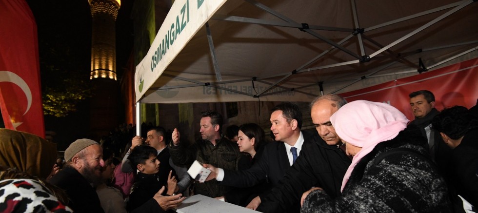 Üç ayların başlangıcını müjdeleyen Regaip Kandili sebebiyle Bursa Ulucami avlusunda vatandaşlarla bir araya gelen Osmangazi Belediye Başkanı Erkan Aydın, yatsı namazı çıkışında Bursalı vatandaşlara kandil simidi ikramında bulundu. Programa Osmangazi Belediye Başkanı Erkan Aydın’ın yanı sıra CHP Osmangazi İlçe Başkanı Raşit Gürbüz, meclis üyeleri ve vatandaşlar katıldı. Kandil simidi ikramında bulunduğu vatandaşların kandillerini tek tek kutlayan Başkan Aydın’a vatandaşlar ikramından dolayı teşekkür etti.
