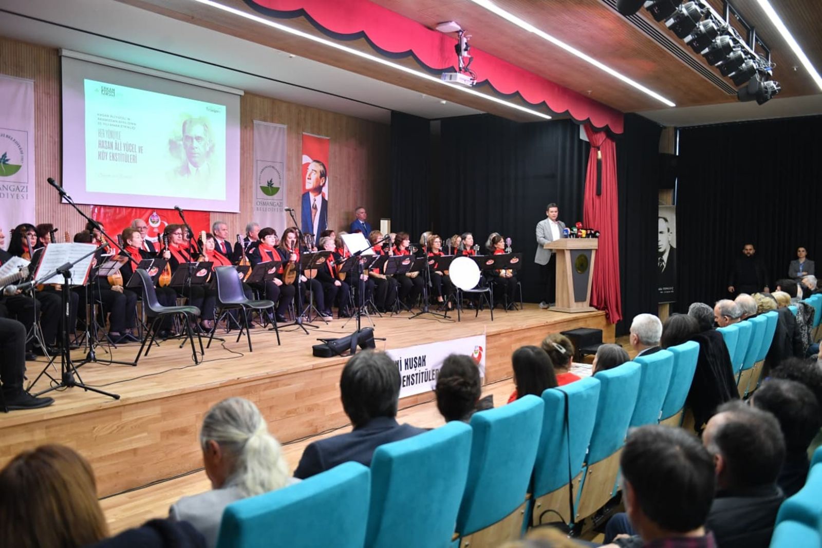 Türkiye’nin eğitim ve kültür hayatına büyük katkılar sağlayan Hasan Âli Yücel, aramızdan ayrılışının 65. yıl dönümünde Osmangazi Belediyesi’nin, Yeni Kuşak Köy Enstitüleri Derneği (YKKED) ile düzenlediği anlam dolu bir program ile anıldı. Osmangazi Gösteri Merkezi’nde gerçekleşen organizasyona Osmangazi Belediye Başkanı Erkan Aydın’ın yanı sıra, Gemlik Belediye Başkanı Şükrü Deviren, YKKED Bursa Şubesi Başkanı Jülide Akköprü, belediye başkan yardımcıları, meclis üyeleri, dernek üyeleri ve vatandaşlar katılım sağladı.