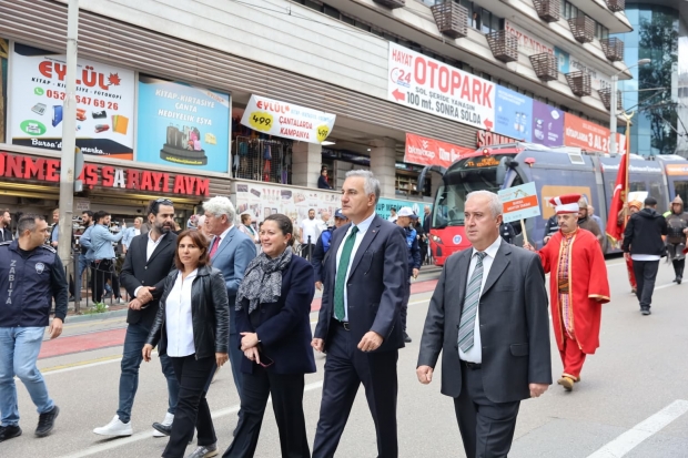 Renkli festival Heykel Atatürk Caddesi’nden başlayarak Eski Atatürk Stadyumu’na kadar süren kortej yürüyüşüyle sona erdi. Festivalin kapanış töreninde konuşan Bursa Büyükşehir Belediyesi Başkanvekili Mustafa Orkun Gazioğlu, üç gün boyunca Bursa’nın dört bir yanında müziğin coşkulu ritimlerinin yankılandığını belirtti. Yeşil Bursa Uluslararası Bandolar Festivali’nin barışın, kardeşliğin ve dostluğun ritmine ev sahipliği yaptığını belirten Gazioğlu, “Festival kapsamında Büyükşehir Belediyesi Bandosu’nun 90.yılını da kutladık. Büyükşehir Bandosu 90 yıl boyunca barışı ve umudun notalarını meydanlarda seslendirdi. Yalnızca bir müzik topluluğu değil; kentin önemli bir değeri ve hafızası olmuştur. Büyükşehir Belediye Başkanımız Mustafa Bozbey de sanata ve sanatçıya büyük önem veriyor. Ulusal ve uluslararası sanatsal çalışmalara devam edeceğiz” dedi.