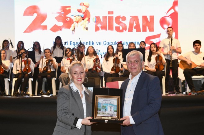 Osmangazi Belediye Başkan Yardımcısı Mutlu Esendemir, konser sonunda Şef Nergis Dinç Yavuz'a teşekkür plaketi takdim etti.