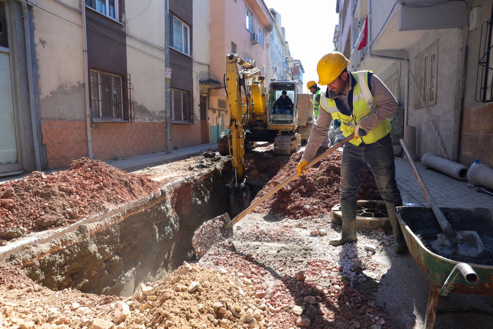 Bursa Büyükşehir Belediyesi, BUSKİ Genel Müdürlüğü’nün çalışmaları kapsamında 17 ilçede altyapı yatırımlarını sürdürüyor. Bu çerçevede BUSKİ Genel Müdürlüğü tarafından Gürsu’nun Zafer, Kurtuluş, İstiklal ve Yenidoğan mahallelerinde aşırı yağışlarda yaşanan taşkınların önüne geçmek ve altyapıyı daha sürdürülebilir hale getirmek amacıyla yağmur suyu ve kanalizasyon hattı yapım çalışmaları yürütülüyor. Zafer, Kurtuluş ve İstiklal mahallelerinde çalışmalar devam ederken Yenidoğan Mahallesi’nde ise imalatın kısa süre içerisinde başlaması planlanıyor.