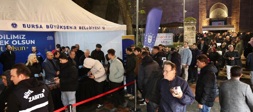 Regaip Kandili, tüm yurtta olduğu gibi Bursa’da da birlik ve beraberlik içerisinde yaşandı. Bursa Büyükşehir Belediyesi, kentin 17 ilçedeki 21 farklı camide vatandaşlara tatlı ikram ederken, Bursa Büyükşehir Belediye Başkanı Mustafa Bozbey de Ulu Cami’de Bursalılarla bir araya gelip kandillerini tebrik etti. Başkan Bozbey, bu anlamlı gecede vatandaşlara tatlı ikramında bulunarak manevi atmosferi paylaştı.