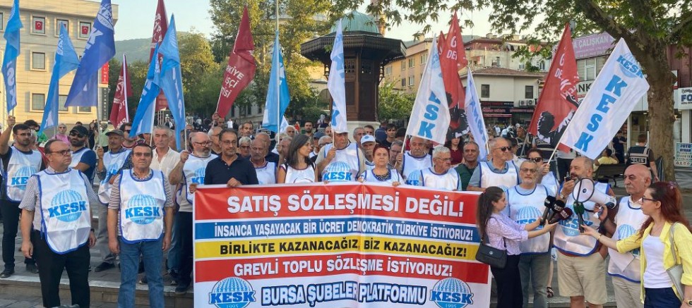 Hükümetin kamu görevlileri ve memur emeklilerinin maaşlarına önerdiği düşük zam teklifine, sendikaların tepkileri sürüyor. KESK Bursa Şubeler Platformu düşük zam dayatmasını Fomara Meydanı'nda protesto etti.