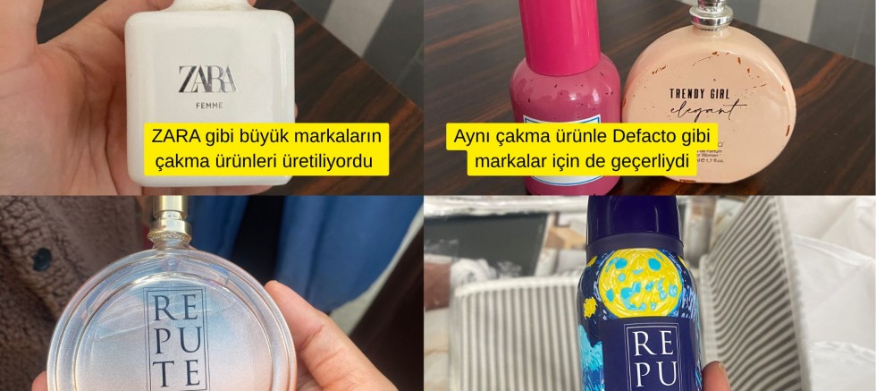 Yangından sağ kurtulan işçiler de daha önce bu atölyede çalışmış olanlar da burada çalıştıkları süre boyunca kapağı bozuk, etiketi yanlış basılmış; yani defolu olan ürünlerin kendilerine verildiğini anlatmıştı. Bu defolu ürünler içerisinde BİM ve A101 gibi zincir marketlerde satılan Lider Kozmetik'e ait olan Repute marka parfüm, Rebul Kozmetik etiketli Silver Rose Kolonya, LCW mağazalarında satılan ve Kiva Kozmetik etiketli çocuk parfümleri de işçilerin dolum ve paketlemesini yaptığı ürünler arasında bulunuyor.