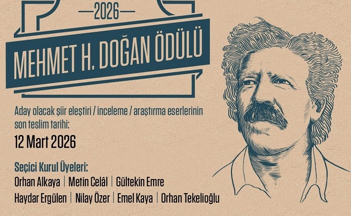 Çağdaş Türk şiirinin önemli eleştirmenlerinden biri olan Mehmet H. Doğan’ın anısını yaşatmak, Türkçe’de yayımlanmış şiir eleştirilerinin önemine dikkat çekmek amacıyla düzenlenen Mehmet H. Doğan Ödülü’nde süreç başladı. Nilüfer Belediyesi Kütüphane Müdürlüğü’nün bu yıl 10'uncusunu düzenlediği ödül, Türkçe şiir eleştirisi, inceleme ve araştırma eserlerine verilecek. Ödüle değer görülen eseri, Orhan Alkaya, Metin Celâl, Gültekin Emre, Haydar Ergülen, Nilay Özer, Emel Kaya, Orhan Tekelioğlu’ndan oluşan seçici kurul belirleyecek.