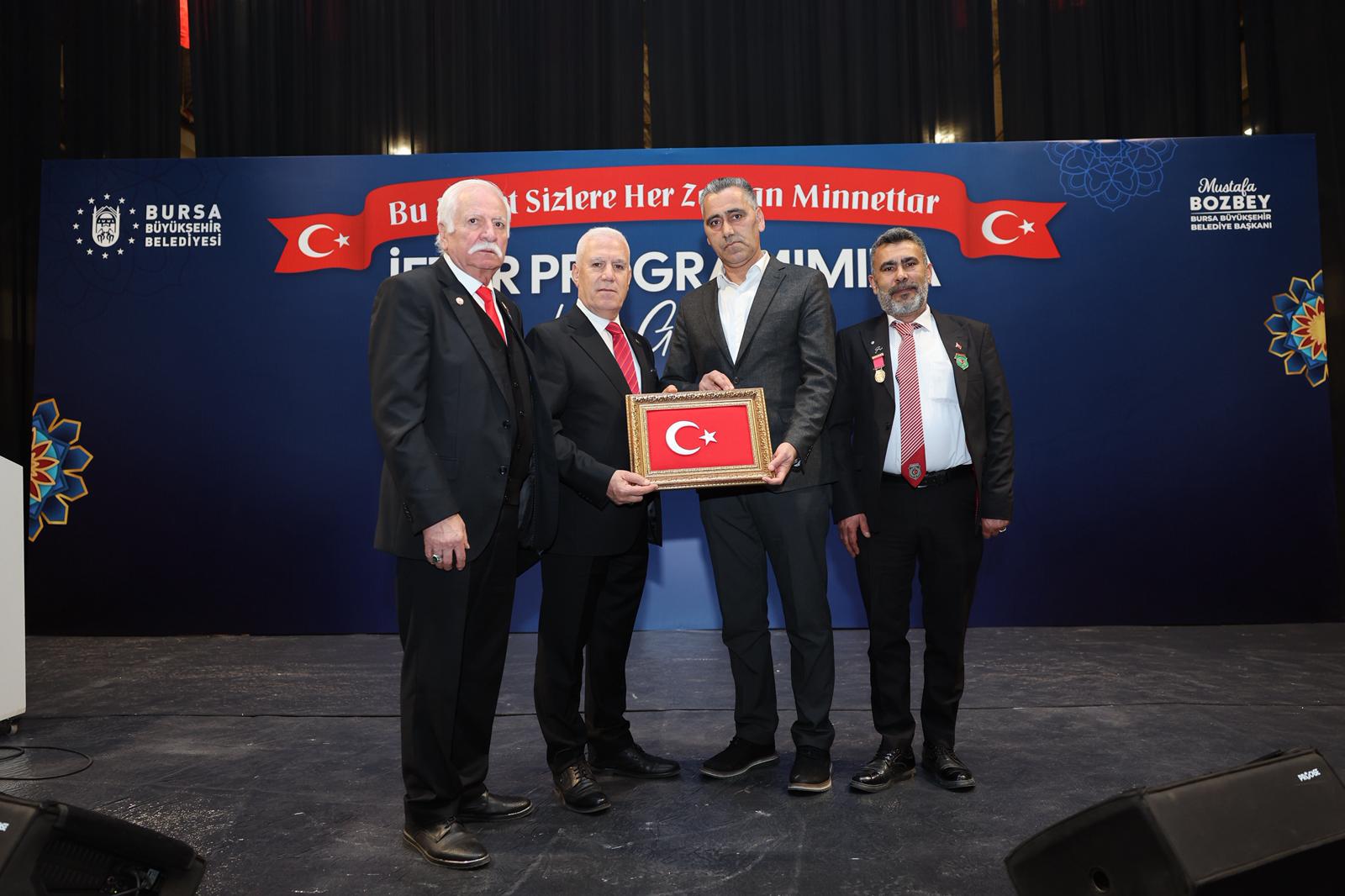 Türkiye Harp Malülü Gaziler Şehit Dul ve Yetimleri Derneği Bursa Şubesi Başkanı Haşim Sivri, iftar programı dolayısıyla Başkan Mustafa Bozbey’e teşekkür etti.