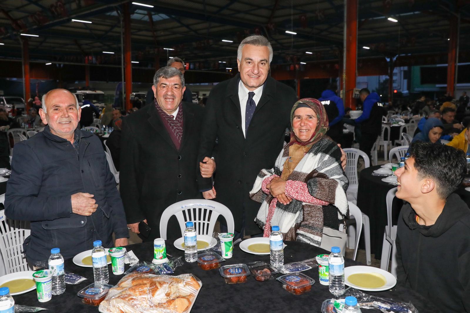 Öte yandan Bursa Büyükşehir Belediyesi’nin Panayır Kapalı Pazar Alanı’nda düzenlediği iftar programına da yüzlerce vatandaş katılarak aynı sofrada buluştu. Başkan Mustafa Bozbey’i temsilen programa katılan Büyükşehir Belediyesi Başkanvekili Mustafa Orkun Gazioğlu, Ramazan ayında gönüllerin birbirine bağlandığını, dayanışmanın ve merhametin en güçlü şekilde hissedildiğini belirterek tüm Bursalıların Ramazan Bayramı’nı da tebrik etti.