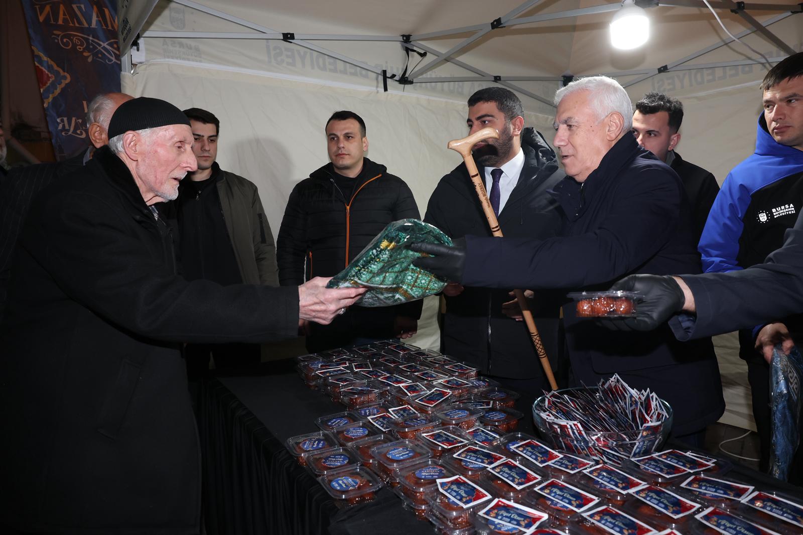 İftar programının ardından Bahçeli Kıraathanesi’nde vatandaşlarla ve muhtarla buluşan Başkan Mustafa Bozbey, teravih namazının ardından Zafer Camii’nde vatandaşlara tatlı ikramında bulundu.