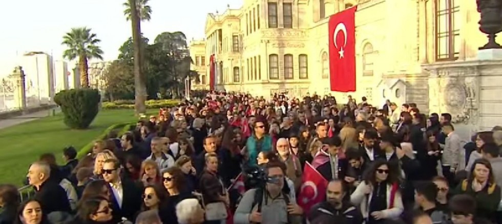 Atatürk'ün sesinden hazırlanan dinleti eşliğinde yurttaşlar Belediyesi Başkan Vekili Rasim Şişman’la birlikte Dolmabahçe Sarayı’na yürüdü.
