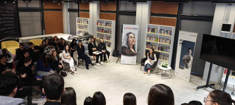 Erden, önce Koza Kütüphane’de lise öğrencilerine Sennur Sezer şiirleri okudu. Söyleşide, öğrenciler de Sennur Sezer ve farklı şairlerin şiirlerini okudu. Öğrenciler, şiir ve tiyatro üzerine Erden’e merak ettikleri soruları yönelttiler.