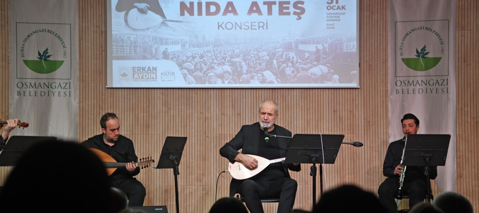 Göçlerin ve insan hikayelerinin türkülerini birlikte dile getireceklerini belirten Nida Ateş, “Hepimiz biliyoruz ki göç, dünyanın olduğu kadar ülkemizin ve şehirlerimizin de en önemli meselelerinden biri. 103 yıl önce büyük bir travma yaşayan insanların bugün artık çocukları ve torunları var. Ancak o sancılı sürecin izleri ve hatıraları, hala toplumsal hafızamızda varlığını sürdürüyor. Biz de bu konserde dilimiz döndüğünce, elimizden geldiğince o döneme ait yaşanmışlıkların türkülere dönüşmüş hallerini sizlerle paylaşmaya çalışacağız. Sadece ezgiler değil; o ezgilerin ardında kalan anekdotları, bilgileri ve duyguları da birlikte hatırlamak istiyoruz. Bu anlamlı geceyi bizlere sunduğu için Osmangazi Belediyesi’ne teşekkür ediyorum” ifadelerini kullandı.