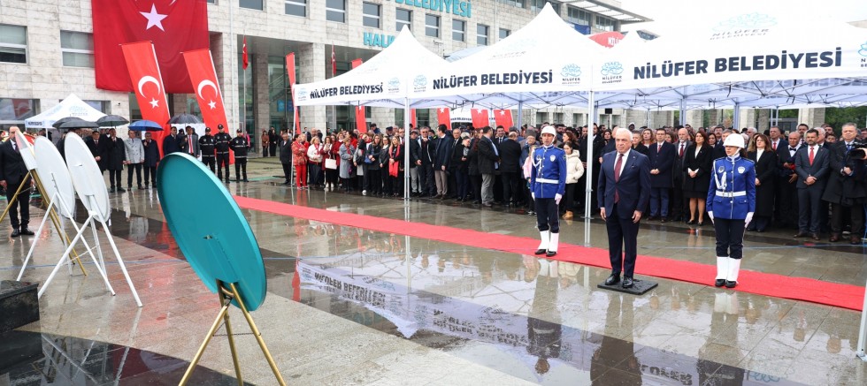 23 Nisan Ulusal Egemenlik ve Çocuk Bayramı ile Türkiye Büyük Millet Meclisi’nin açılışının 106. yıl dönümü vesilesiyle, Nilüfer Belediyesi Halk Evi önündeki Cumhuriyet Meydanı’nda tören düzenlendi. Atatürk Anıtı’na sunulan çelenk ile başlayan tören, saygı duruşu ve İstiklal Marşı’nın okunmasıyla devam etti.