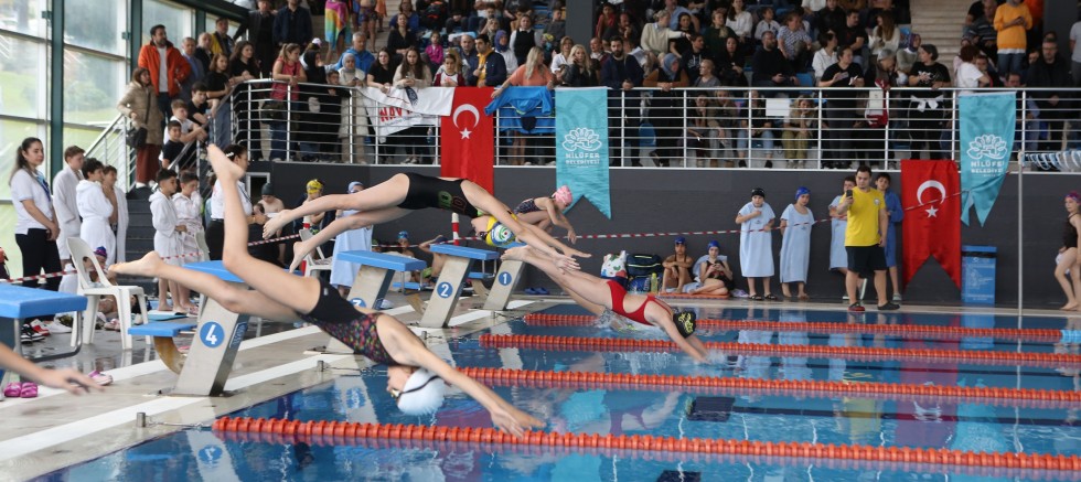 Konak Olimpik Yüzme Havuzu Tesisi’nde gerçekleşen yüzme müsabakalarında ise küçük sporcular madalya için kıyasıya mücadele etti.