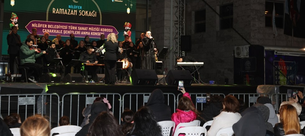 Nilüfer Ramazan Sokağı etkinlikleri, 18 Mart Çanakkale Zaferi ve Şehitleri Anma Günü’ne özel “Çanakkale Şehitleri Anma Konseri” ile son buldu. Nilüfer Belediyesi Türk Sanat Müziği Korosu’nun sahne aldığı gecede, Atatürk’ün sevdiği şarkılar ve Çanakkale türküleri seslendirildi. Filiz Başıbüyük’ün şefliğini yaptığı koro, “Hey On Beşli”, “Hoş Gelişler Ola Mustafa Kemal Paşa”, “Çanakkale İçinde Aynalı Çarşı”, “İzmir’in Dağları”, “Ah Bir Ateş Ver” gibi eserlerin yanı sıra Rumeli türkülerini seslendirdi.