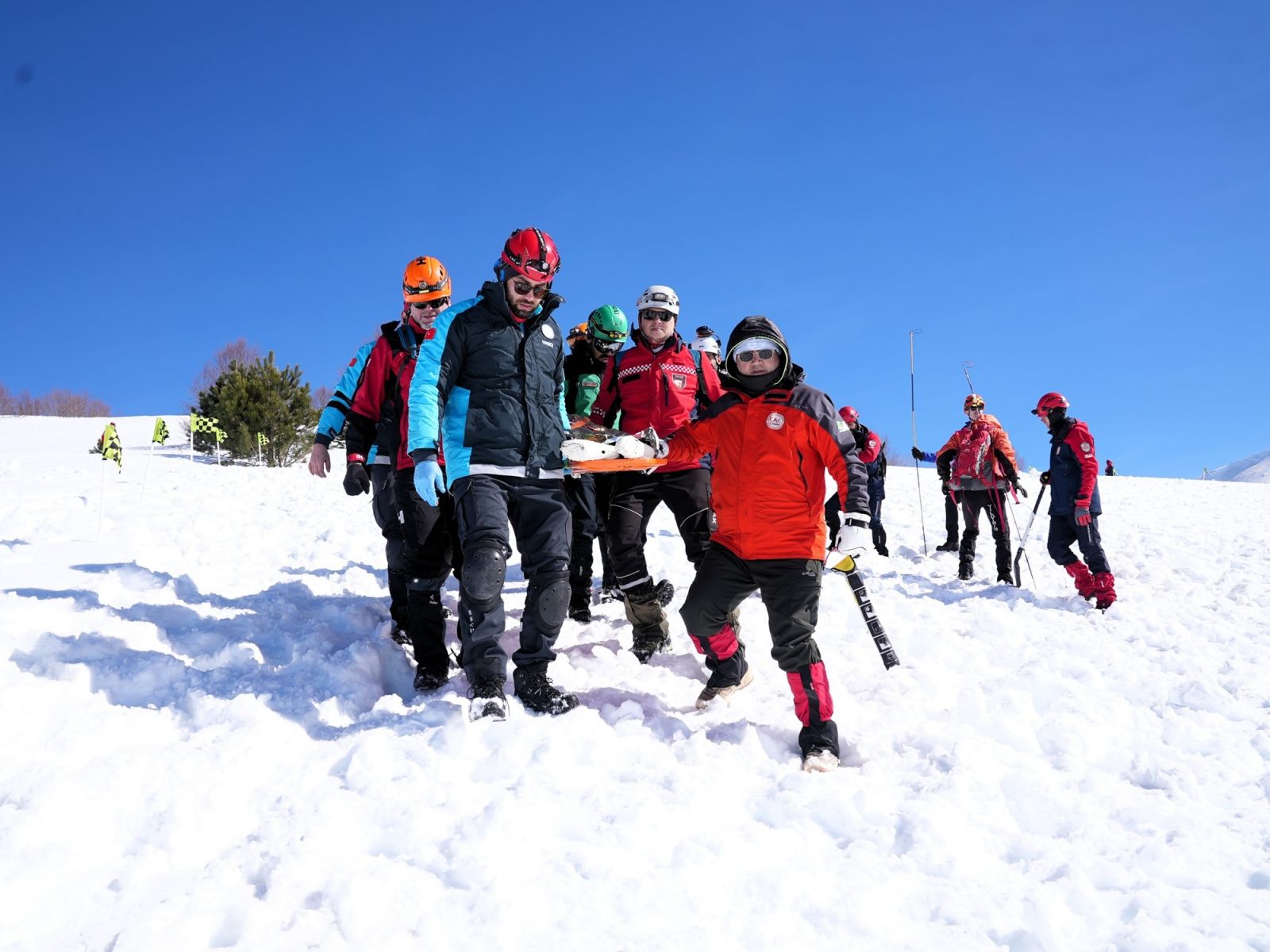 Toplam 113 personelin yer aldığı tatbikatta, senaryo gereği çığ altında kalan üç kazazedeye ulaşmak için ekipler koordineli şekilde çalışma başlattı. Arama kurtarma faaliyetlerinde özel arama cihazları, sondalama teknikleri ve arama kurtarma köpekleri kullanıldı. Çalışmalar sonucunda saat 16.30 itibarıyla çığ altında kalan üç kazazedeye ulaşıldı. Senaryoya göre iki kazazedenin hayatını kaybettiği belirlenirken, bir kazazede ise sağ olarak kurtarıldı. Sağ kazazedenin yeri AFAD’ın canlı arama köpeği tarafından tespit edildi. Kar kütlesi altından çıkarılan kazazedelere olay yerinde ilk müdahale yapıldıktan sonra güvenli bölgeye tahliyeleri gerçekleştirildi.