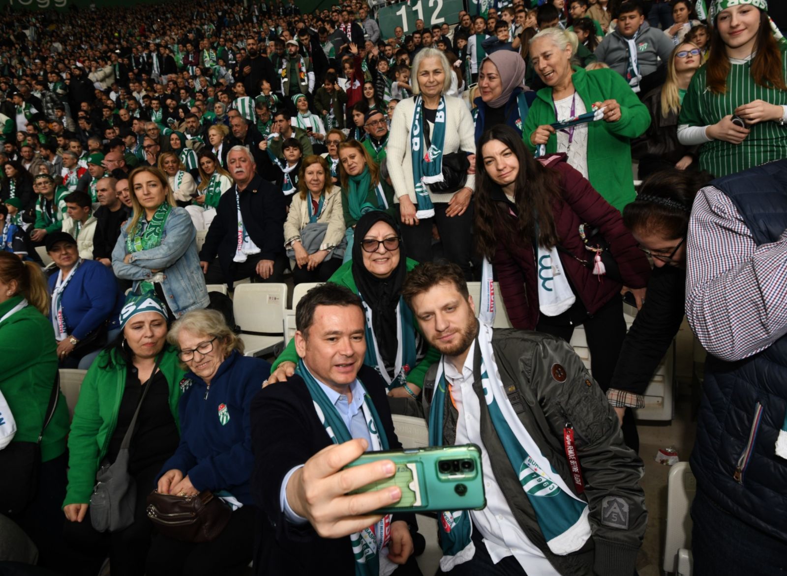Osmangazili vatandaşlarla tribünde yakından ilgilenen Osmangazi Belediye Başkanı Erkan Aydın da, müsabaka boyunca coşkularını paylaştı. Yeşil beyazlı taraftarların da yoğun ilgisiyle karşılaşan Başkan Aydın, fotoğraf isteklerini geri çevirmeyerek, o anları ölümsüzleştirdi.