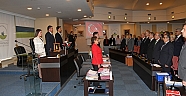 Meclis toplantısında Başkan Aydın, meclis üyeliğinden istifa eden Sinan Nergiz’in yerine seçilen Hamiyet Arıkarslan’ın rozetini taktı.