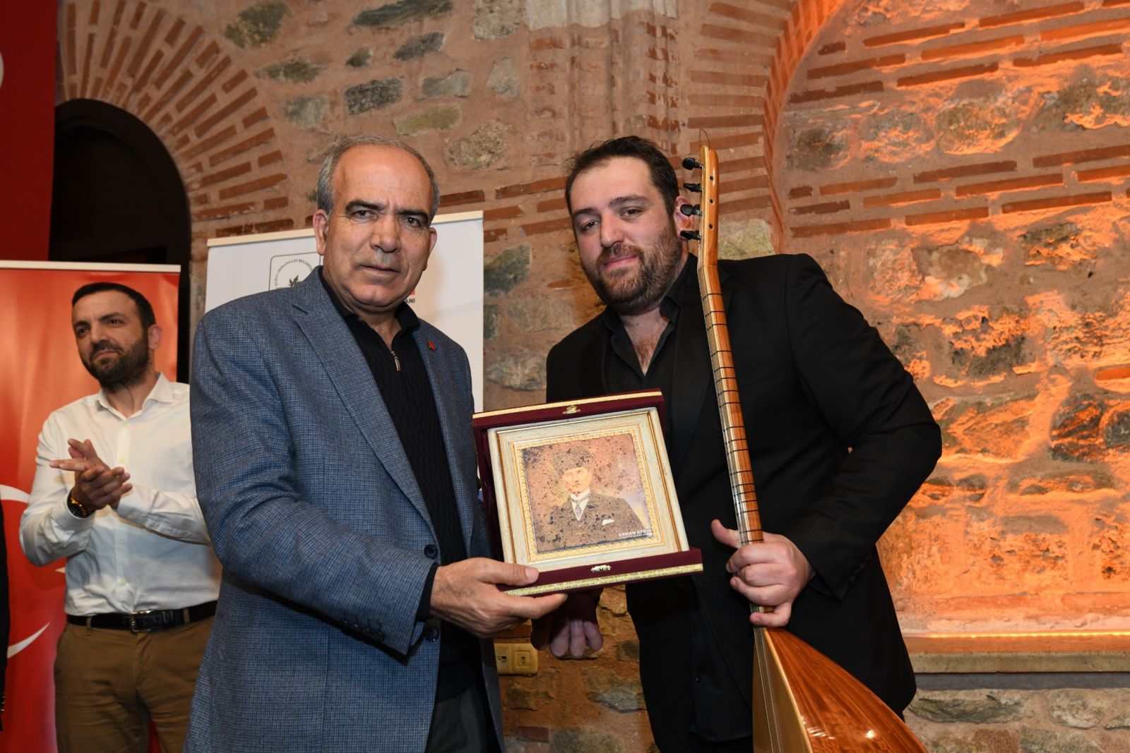 Programın sonunda Osmangazi Belediye Başkan Yardımcısı Mutlu Esendemir ve CHP Osmangazi İlçe Başkanı Raşit Gürbüz, Saz sanatçısı Selçuk Oruç’a ve Bursa Uludağ Üniversitesi Türk Dili ve Edebiyatı Bölümü Öğretim Üyesi Doç. Dr. M. Emir İlhan’a teşekkür plaketi takdiminde bulundu.
