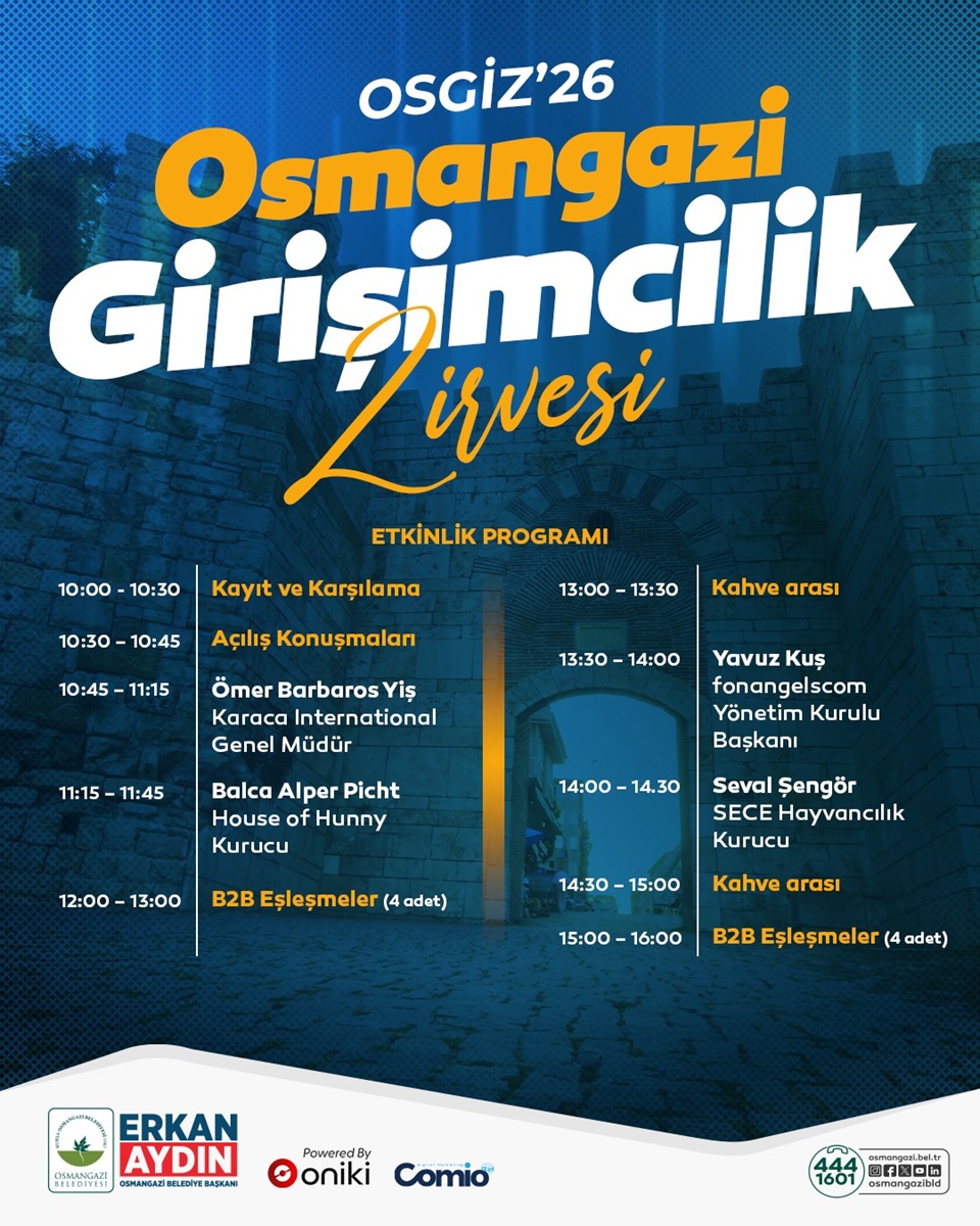 Kontenjanın sınırlı olduğu ve tamamen ücretsiz olarak gerçekleştirilecek zirveye yoğun ilgi beklenirken, organizasyon şimdiden bölgenin en dikkat çeken girişimcilik etkinliklerinden biri olmaya aday gösteriliyor. Osmangazi Belediyesi, OSGİZ’26 ile yalnızca bir zirveye değil; yeniliğe, iş birliğine ve geleceğin iş dünyasına öncülük ediyor.