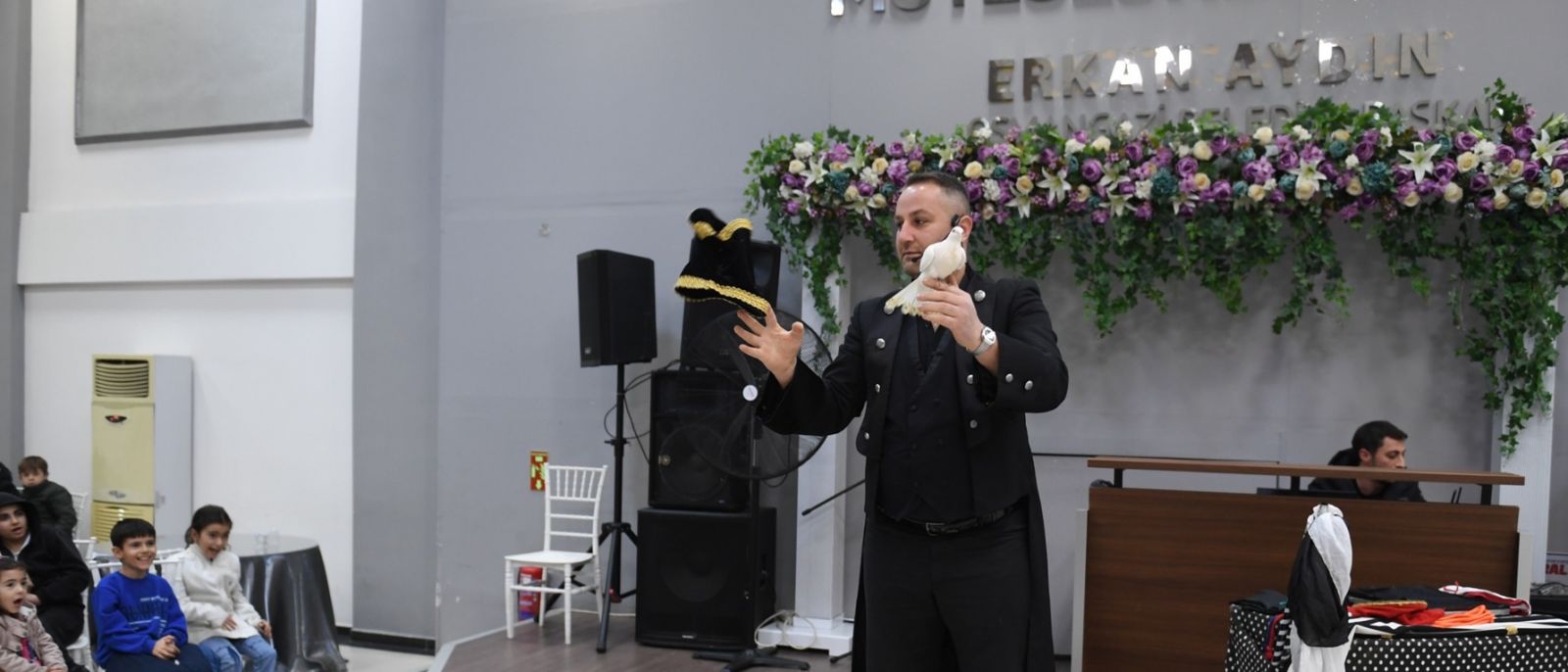 Program kapsamında sahnelenen sihirbazlık gösterisi de çocukların yoğun ilgisini çekti. Birbirinden ilginç numaralar sergileyen sihirbazın gösterileri sırasında çocuklar şaşkınlıklarını gizleyemezken, sahnede yaşanan renkli anlar salonda büyük bir heyecan yarattı. Sihirbazın gerçekleştirdiği numaraları büyük bir dikkatle takip eden çocuklar, gösteri boyunca alkışlarıyla ve kahkahalarıyla eğlenceye ortak oldu.