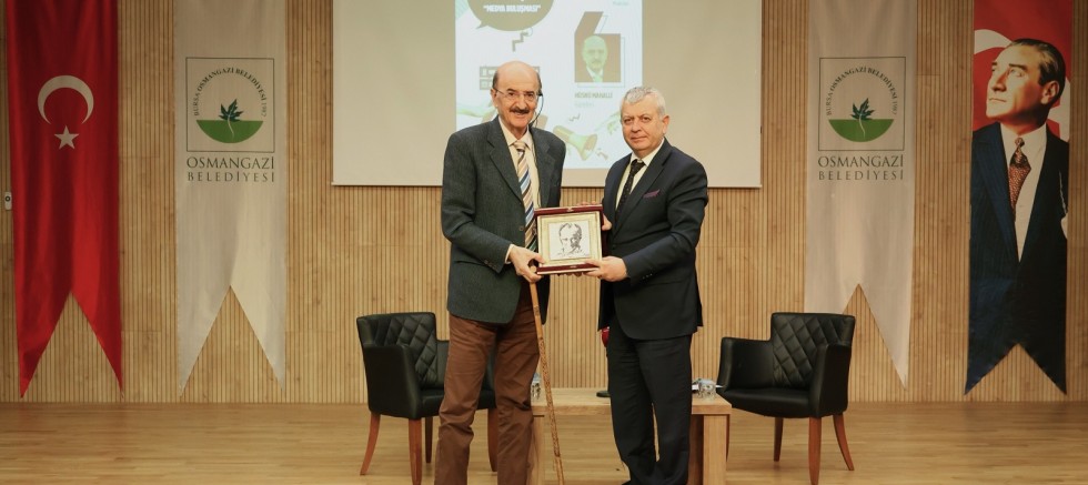 Programın sonunda Osmangazi Belediye Başkan Yardımcısı Mutlu Esendemir, günün anısına gazeteci Hüsnü Mahalli’ye hediye takdim etti.