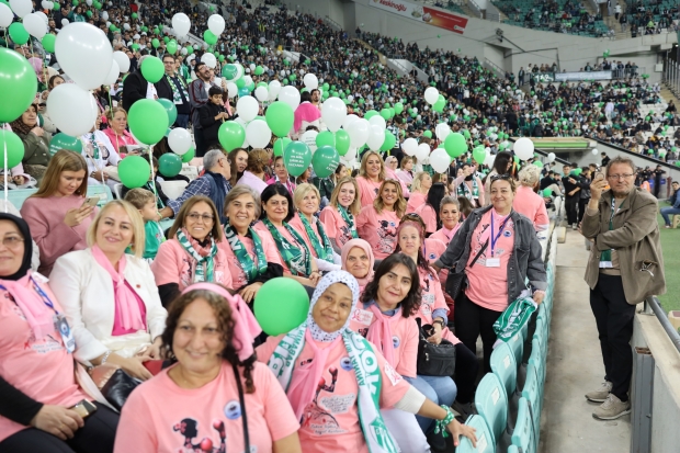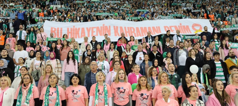 Bursa Büyükşehir Belediyesi’nin 1-31 Ekim Meme Kanseri Farkındalık ayı kapsamında, farkındalık oluşturmak amacıyla düzenlediği etkinliklerin bir yenisine Bursa Büyükşehir Belediye Başkanı Mustafa Bozbey’in eşi Seden Bozbey de katıldı. Bursa Büyükşehir Belediyesi'nin organizasyonuyla yaklaşık 100 kadın pembe tişörtleriyle Bursaspor Menemen Belediyespor maçını izleyerek farkındalık oluşturdu. Kadınlarla birlikte Bursaspor maçını tribünden izleyen Seden Bozbey, pembe kurdele takarak farkındalık mesajı verdi. Seden Bozbey, “Bursaspor Yeşilin İncileri Derneği ve Bursa Kanser Derneği işbirliği ile maçı kadınlarla birlikte izledik. Hem Bursaspor’u desteklemek hem de bu ayın farkındalığını artırmak amacıyla tribündeyiz" dedi.